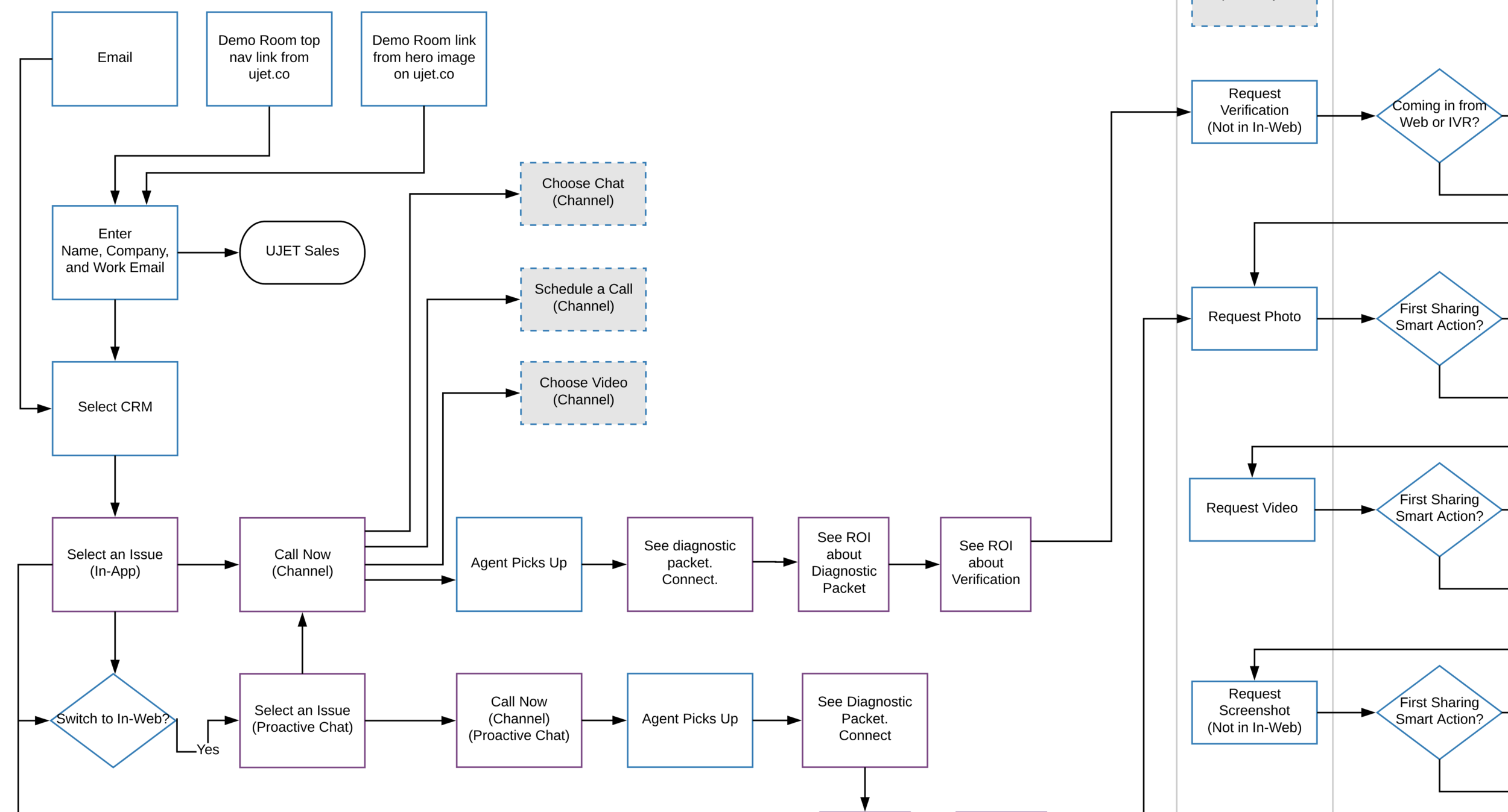 Prospective customers were not able to quickly glean how UJET stands out from the its competitors from the existing website. In-person demos are time consuming and not scalable. I worked with a web developer, marketing communications specialist, and visual designer to design and build a virtual demo experience.