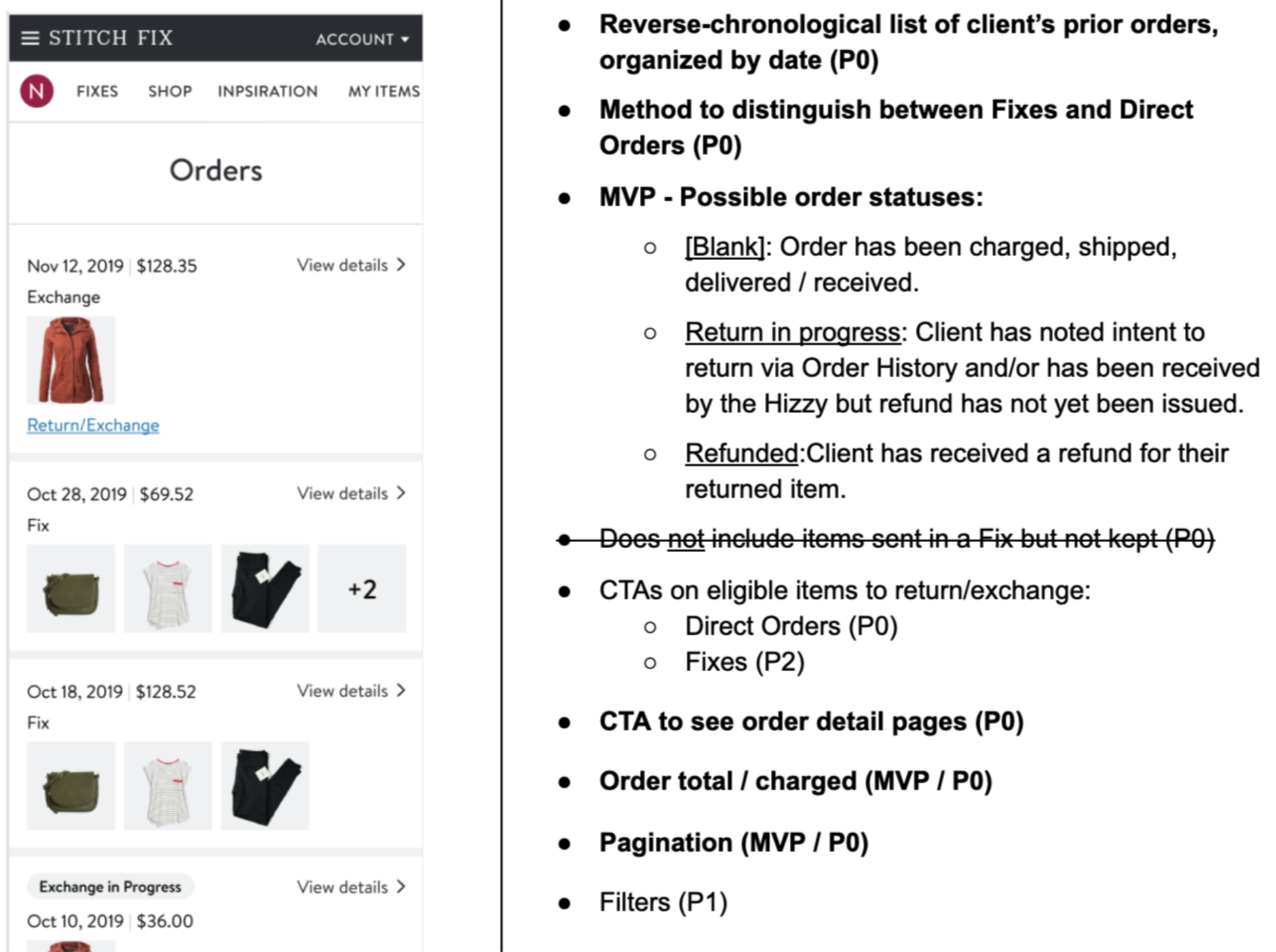 The product manager and I prioritized what to build based on these use cases for both high-level Orders: